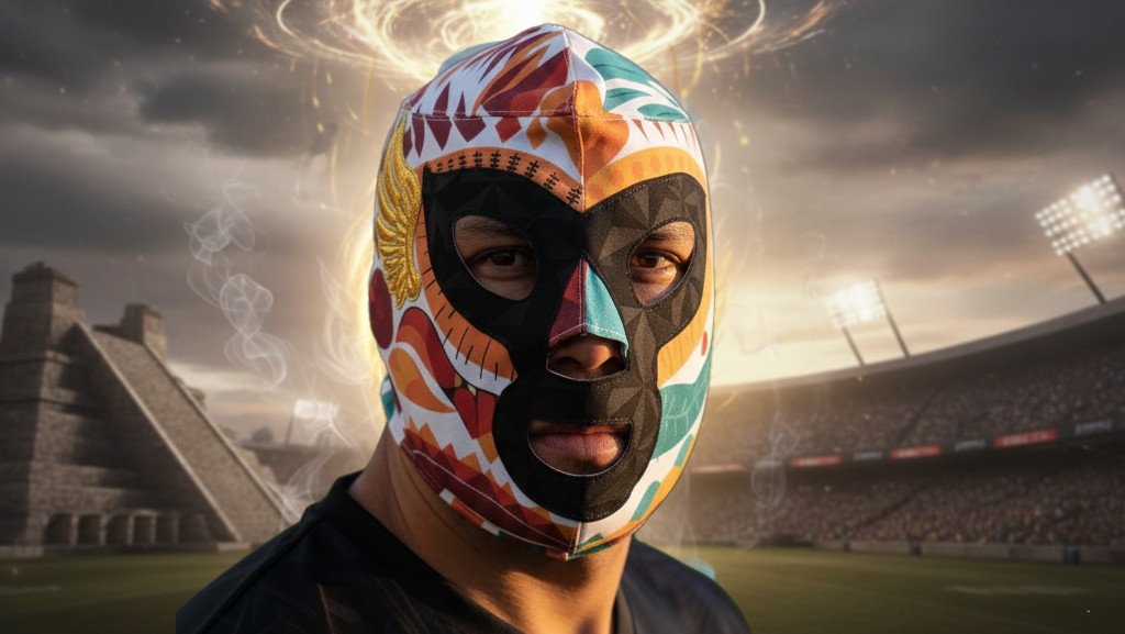 El juego de pelota maya se fusiona con la pasión de la lucha libre y entran a la cancha. Una máscara, dos destinos.